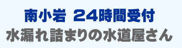 南小岩で早くて安い水道修理業者をお探しの方は当店までお問い合わせください。蛇口の水漏れ、トイレつまり、排水口の溢れ、パイプ修理など、南小岩での水道トラブルは最短15分到着です。南小岩は24時間受付。南小岩エリアは見積もり無料、出張費0円でスタッフがかけつけます。南小岩にお住まいの方で水廻りのお困りごとはご相談ください。