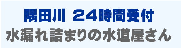 隅田川で早くて安い水道修理業者をお探しの方は当店までお問い合わせください。蛇口の水漏れ、トイレつまり、排水口の溢れ、パイプ修理など、隅田川での水道トラブルは最短15分到着です。隅田川は24時間受付。隅田川エリアは見積もり無料、出張費0円でスタッフがかけつけます。隅田川にお住まいの方で水廻りのお困りごとはご相談ください。