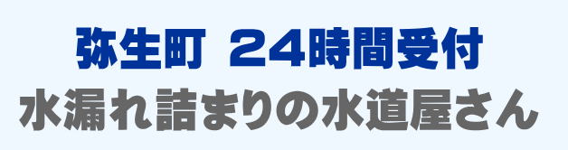 弥生町で早くて安い水道修理業者をお探しの方は当店までお問い合わせください。蛇口の水漏れ、トイレつまり、排水口の溢れ、パイプ修理など、弥生町での水道トラブルは最短15分到着です。弥生町は24時間受付。弥生町エリアは見積もり無料、出張費0円でスタッフがかけつけます。弥生町にお住まいの方で水廻りのお困りごとはご相談ください。